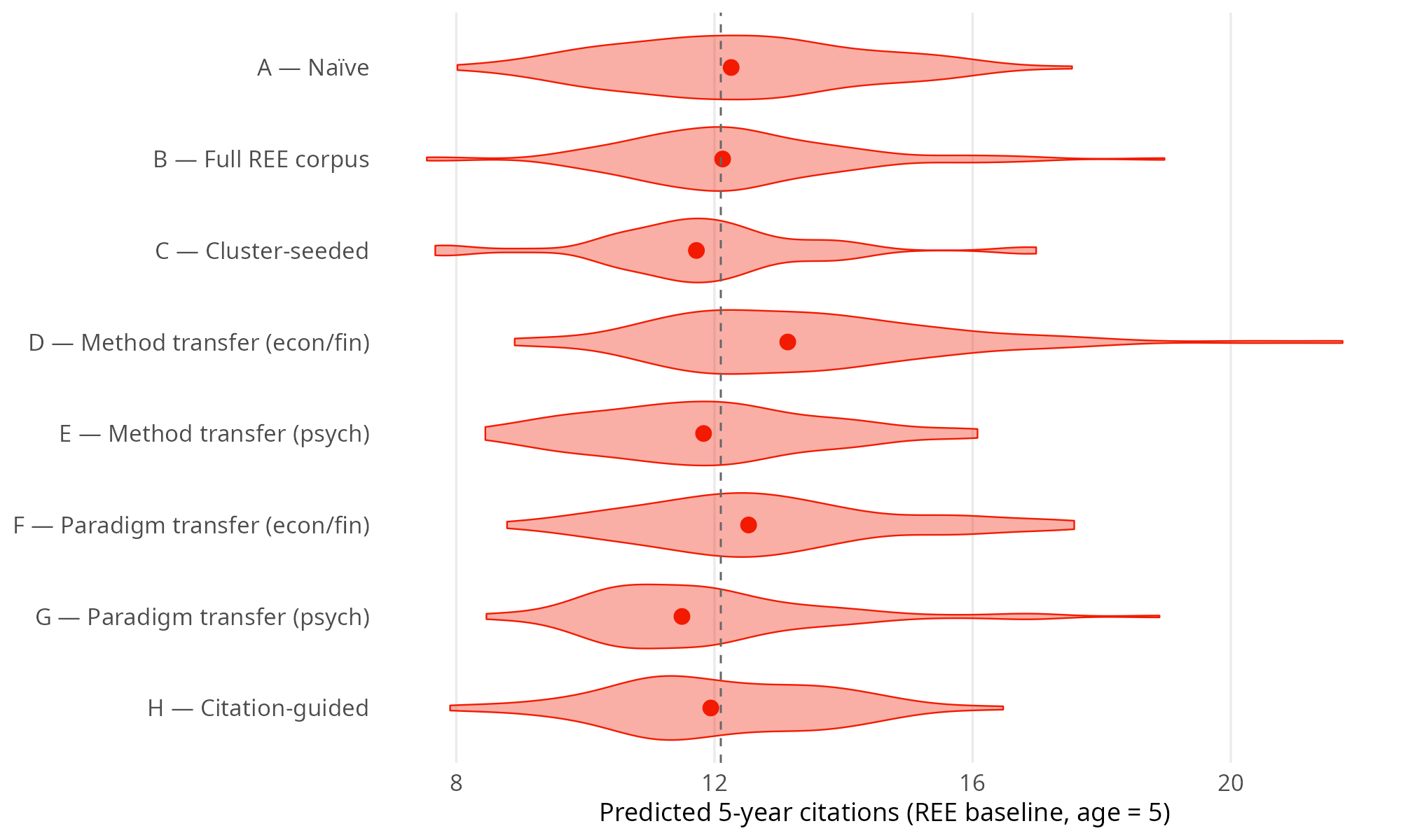 | Condition | Clusters | HHI | Atypicality | Periph./REE | NN dist./REE | Pred. cit. |